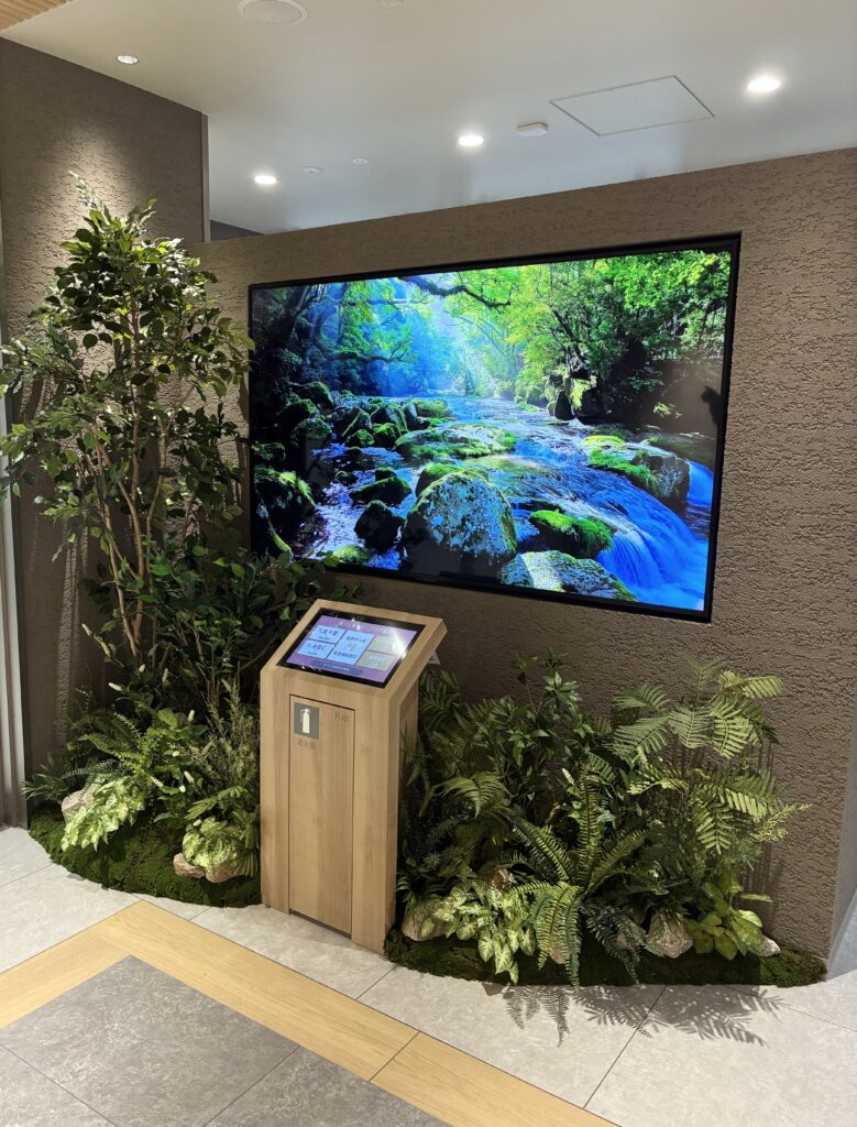来訪者のスムーズなご案内に加え、フィーリング映像やBGMもお楽しみいただける仕様となっており、空間に心地よい彩りを添えています。