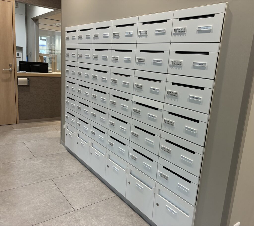 さらに、デザイン性にもこだわったメールボックスを新設し、当ビルでは初となる宅配ボックスを導入いたしました。